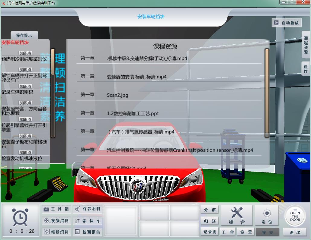 l 依据全国技能大赛别克威朗定期维护作业流程经行研发设计。